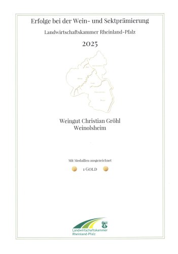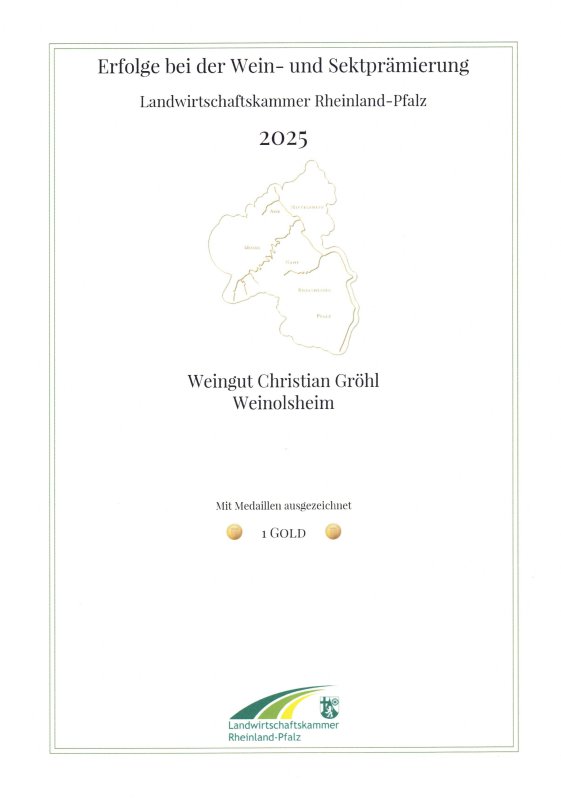 Wir freuen uns sehr über eine Gold-Medaille der Landwirtschaftskammer Rheinland-Pfalz, mit der unser 2024er Sauvignon Blanc ausgezeichnet wurde.
